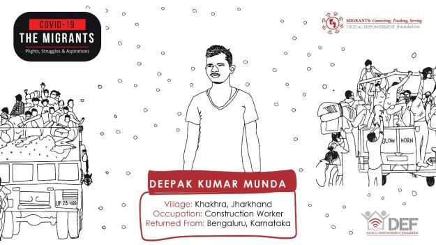 Deepak Munda and Rakesh Prasad arrived in Bengaluru before the lockdown was declared. Rakesh had given his 10th-grade examination prior to his departure from Khakhra,