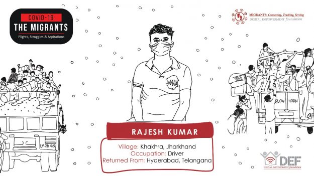 Rajesh Kumar returned to Indra Reddy Nagar District, Telangana on 17th March to resume his driving work. He was able to work for two-days as the lockdown was implemented on the third.